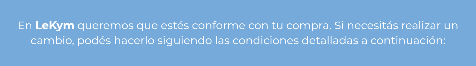 Podés solicitar el cambio de tu producto por otro talle, color o prenda disponible dentro de la misma temporada.